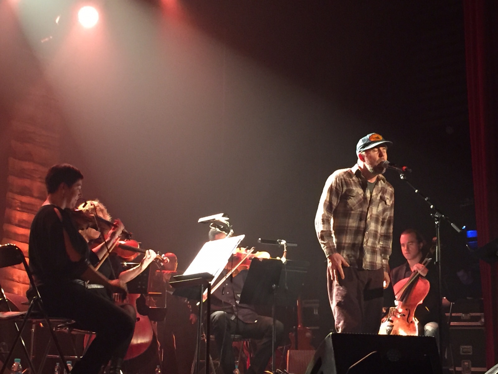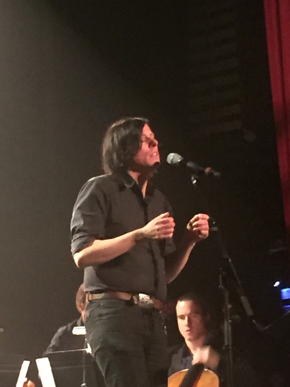 Enfin, c’est au tour du timide Jason Lytle, casquette et chemise à carreaux de venir chanter, c’est sûrement lui le plus émouvant. Il faut dire qu’il était très proche d’Elliott Smith, on sentait tous qu’il ne faisait pas semblant. Et nous même porté par l’orchestre, nous nous sommes étonnés à frissonner plus d’une fois.