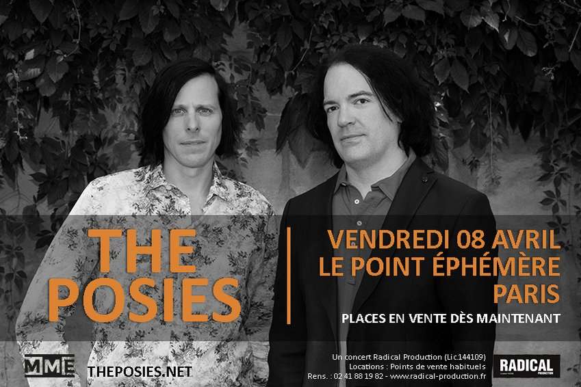 The Posies vont partir en tournée européenne en mars et en avril et passeront par la France le 8 avril 2016 au Point Éphémère à Paris (Event Facebook). Nous vous conseillons fortement de vous y rendre.