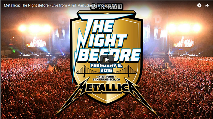 Metallica annonce que leur concert pour la veille du Super Bowl à San Francisco sera disponible gratuitement le 6 février. Le concert sera donc diffusé en direct du AT&T Park, et disponible en ligne. Metallica devrait être sur scène à 20h30 (Heure SF) le 6 février, donc vers 5h30 heures françaises.