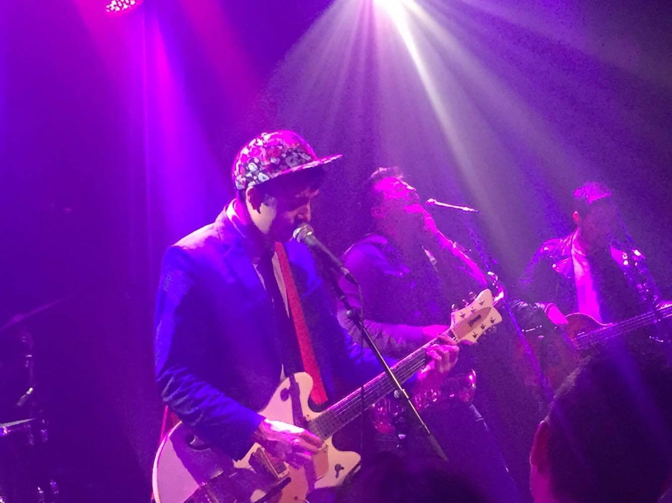 12755318_996947463732806_1636640148_oLe concert commence par RESTLESS YEAR, morceau d’ouverture du dernier album et single jouissivement efficace. Pas moins de dix titres du dernier LP seront joués ce soir et c’est parti pour un set flamboyant, Ezra nous transporte dans plein d’univers différents. On pense, de manière évidente à la candeur et à la naïveté de Jonathan Richman. J’imagine que ça doit être son influence principale, mais aussi a Daniel Johnston pour la voix, le Velvet Underground pour le coté urbain… Et puis à un milliard d’autres trucs, des morceaux presque punk rock, blues, doo wop…. Tout le groupe sonne fluide, mention spéciale au saxophone.