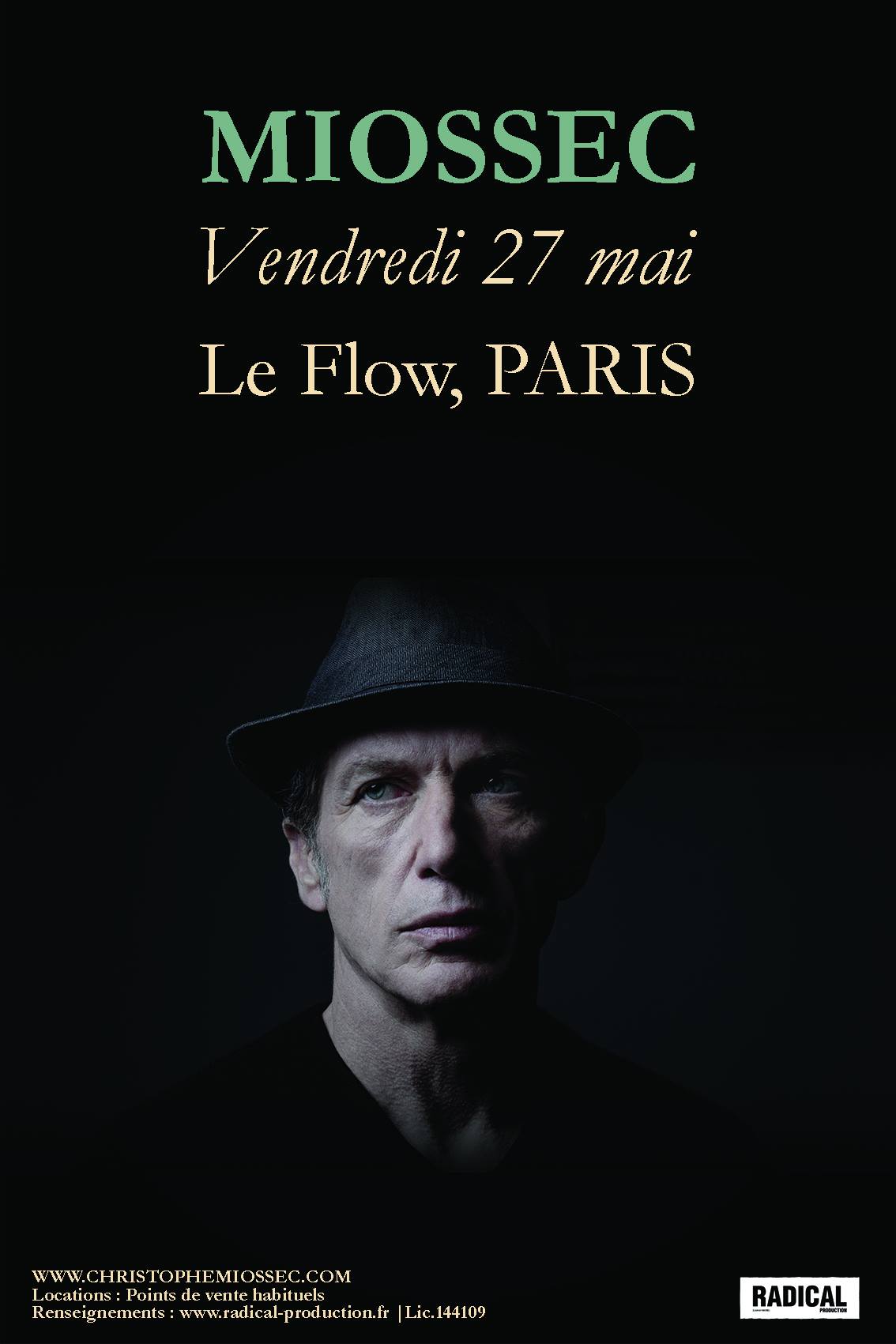 Miossec sera en concert le vendredi 27 Mai à Paris ! Il a choisi la nouvelle le Flow, bâtiment flottant amarré sur la rive gauche de la Seine, en amont du Pont Alexandre III, pour fêter la sortie de son dixième album.