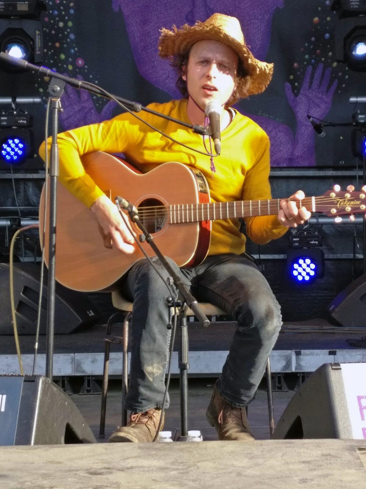 Après, je file voir un bout de RonS Peno and the superstition, un crooner australien que des amis m’avaient conseillé. J’ai trouvé ça plutôt chiant, du rock à papa, limite variét’, je ne reste pas longtemps. Je pars voir David Viner, un (anti) folkeux anglais. Sympa quoi que, un peu monocorde… J’ai écouté sur disque depuis et je recommande chaudement.
