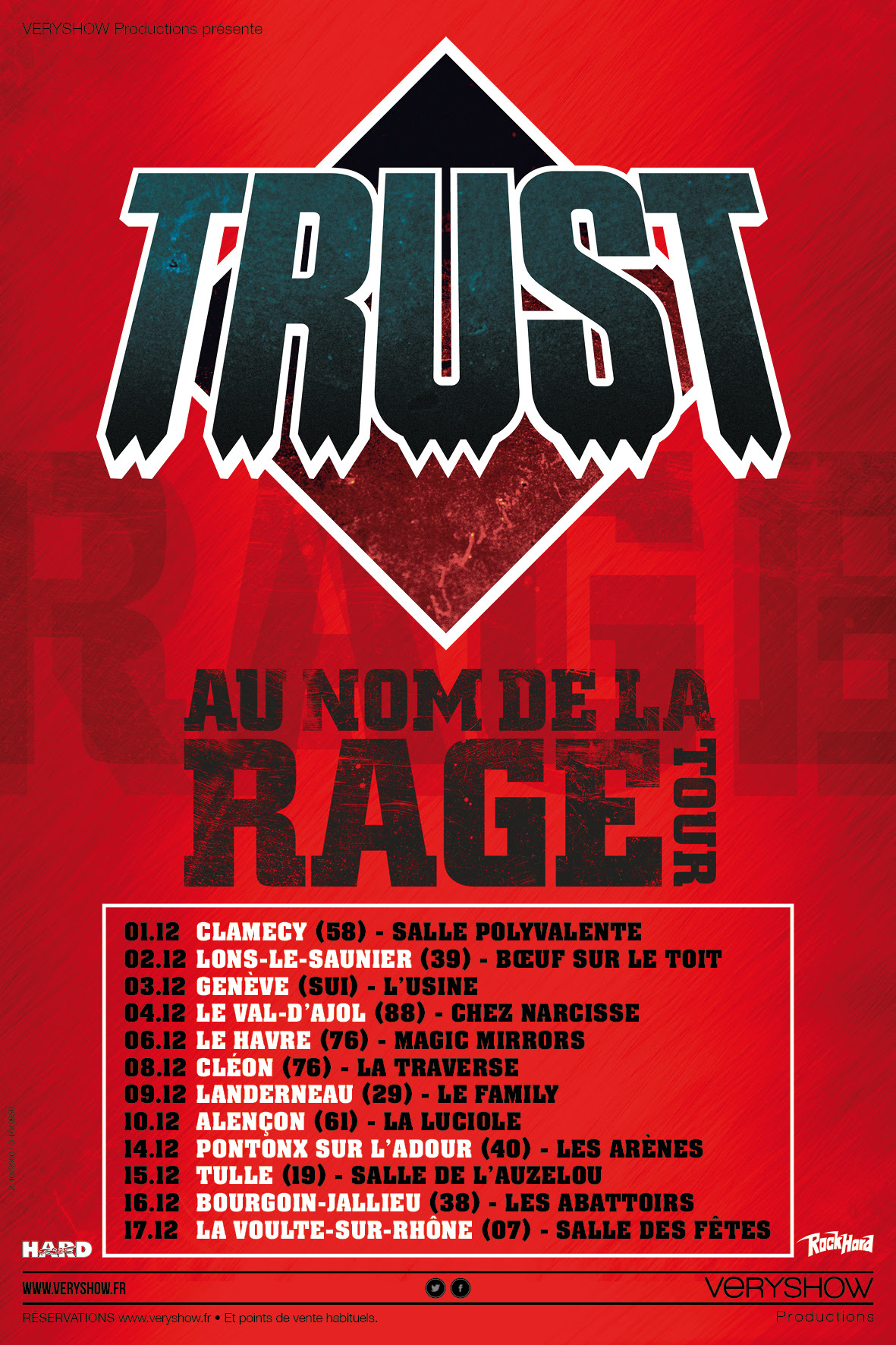 Finies les bouderies. Pour les 40 ans du groupe, Bernie Bonvoisin et Norbert Krief avaient annoncé la reformation de leur groupe et de monter à nouveau sur scène. En décembre, ils joueront donc dans une douzaine de petites salles françaises. Peut-être boosté par le succès rencontré par Les Insus, Trust a donc souhaité recommencer modestement et prudemment, histoire sans doute de voir si la mayonnaise prend encore et si le public est toujours au rendez-vous. Le groupe donnera son premier concert officiel le 1er décembre à la salle polyvalente de Clamecy (!). Billets en vente ici. Un peu cher pour aller dans une salle des fêtes tout de même…