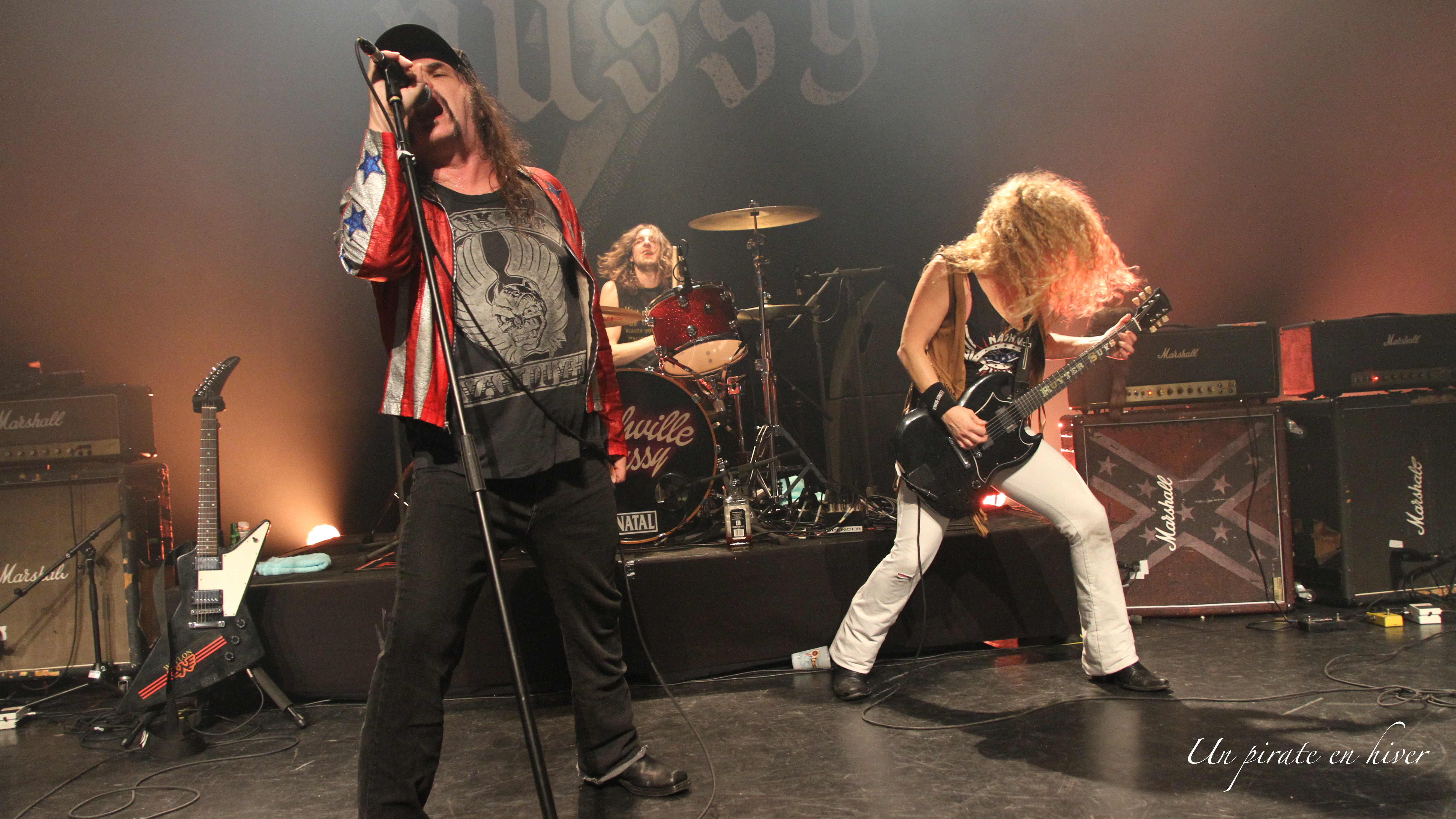 Il s’agissait du troisième concert du groupe auquel j’assistais (Dunkerque en 2014 et Paris au Trabendo en 2002), et force est de constater l’évolution du son : nettement moins bourrin qu’à leur début (attention j’aime ça) mais leur jeu est beaucoup plus varié et Ruyter est une excellente guitariste. Enfin tout ce que j’aime : des riffs incisifs, des plans guitar hero, c’est super wild. Et puis bien sûr, il y a toujours le show autour, le drapeau confédéré, les t-shirts troués de Ruyter laissant deviner une abondante poitrine, les rasades de Jack Daniels que tout le groupe s’envoie goulument (mais aussi du vin rouge et de la bière pour le batteur).