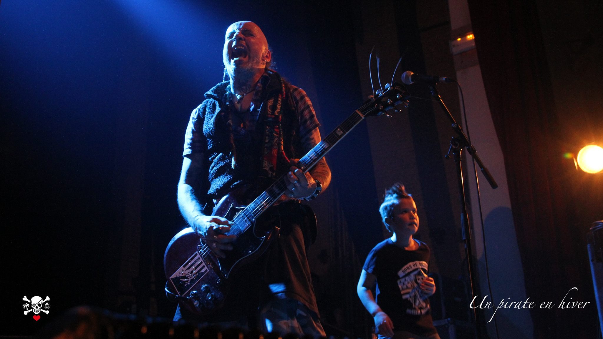 A peine le temps de commander une bière que d’autres bretons débarquent sur scène. Loran et sa bande viennent faire leurs balances. « Eh oui c’est ça les Ramoneurs de Menhirs » annoncera t-il fièrement. La guitare est accordé, les binious aussi, ainsi que les bombardes. Son ar gewier est envoyé, déclenchant un mouvement de foule vers l’avant de la scène pour commencer les hostilités.