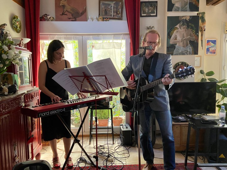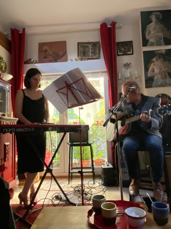Autour d’une tarte aux fraises (excellente !!! En passant…), échanges simples et décomplexés avec Stéphane Guichard, chanteur/fondateur, et Elsa Sadet, claviériste, des Soucoupes Violentes pour faire le point sur leur actualité et évoquer la sortie de leur compilation de reprises “16 potions d’amour” cet automne. A déguster sans modération !