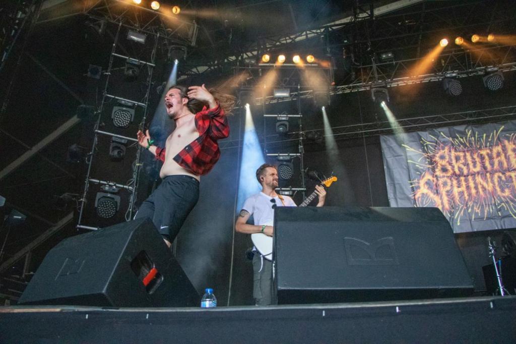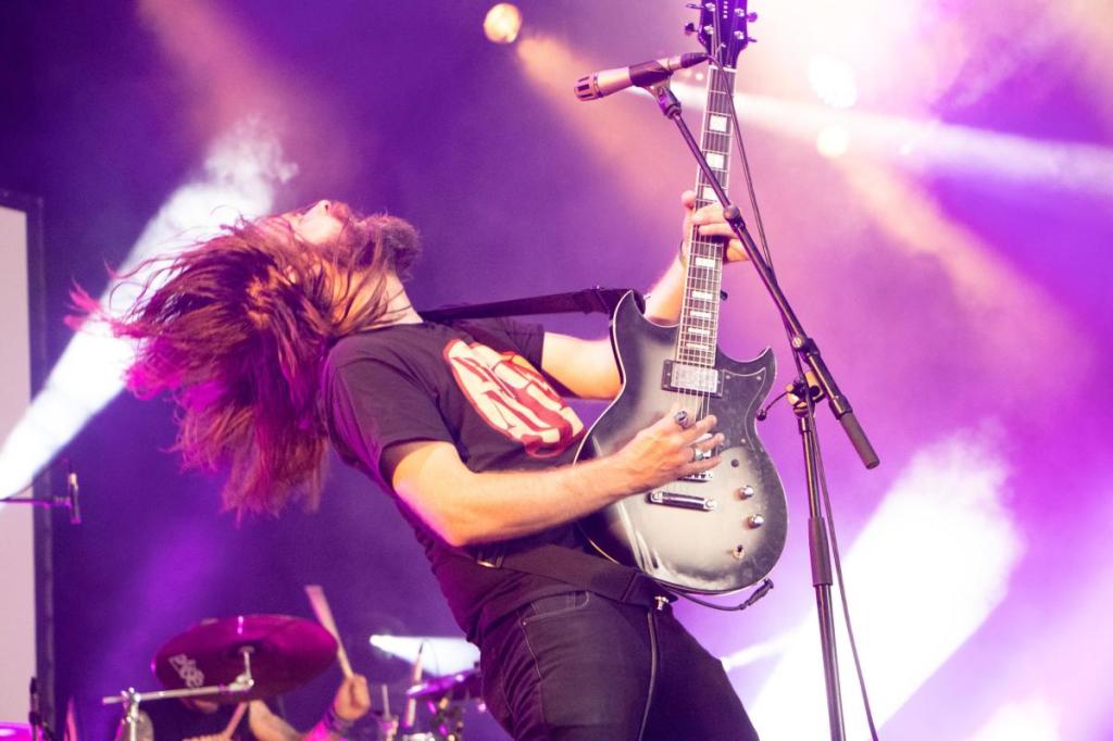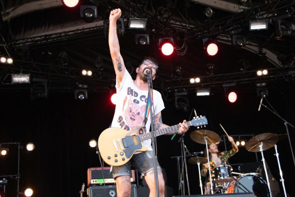 Le feu d’artifice étant annulé pour cause de sécheresse et de risques d’incendies, nous nous dirigeons pour le dernier concert du jour avec les australiens d’Airbourne. Toujours efficace avec leur hard rock aux influences d’AC/DC puissance 1000, nous sommes assurés de passer une excellente heure. Et qu’elle passe vite ! Toujours autant d’énergie, d’esprit rock, de bières fracassées sur le crâne, de refrains imparables, de whisky bus et distribués au public. Tout le monde s’amuse aussi bien sur scène que dans la fosse où sont repris les désormais classiques Ready To Rock, Girls in Black, Breaking Outta Hell, Live It Up ou encore Running Wild.
