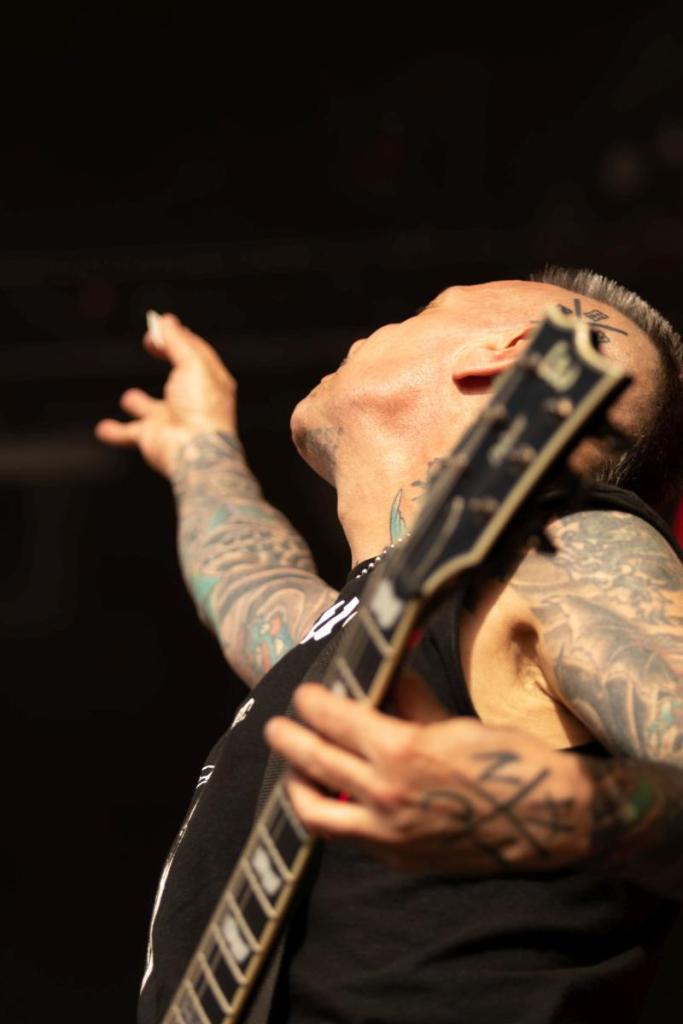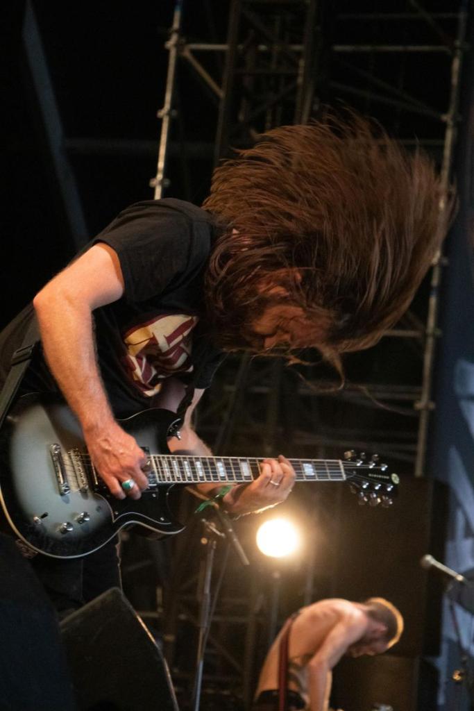 Les joyeux lurons de Steel Panther débarquent, prêt à faire leur show, comme à leur habitude. Carrés et incroyables musicalement. Satchel et son T-Shirt effilé Gojira, délivre des riffs et des solis à tire-larigot nostalgique d’une période dorée à écouter les plus grands artistes glams sur le Sunset Strip au beau milieu des années 80. Michael Starr montre encore une fois ses capacités vocales exceptionnelles et Stix Zadinia accompagne le groupe avec sa batterie. Seul absent de taille, Lexxy Foxx qui a décidé de quitter le groupe, remplacé par Spyder. Moins loufoque et naïf, on regrettera l’ancien bassiste parti pour d’autres aventures. Les blagues salaces s’enchaînent, les filles laissent tomber le maillot, montent sur scène avec le groupe pour s’amuser et chanter avec eux. On tient là un des meilleurs shows du jour. Mention spéciale à l’imitation d’Ozzy Osbourne, hilarant. On peut tout reprocher au groupe. Bavard, parodique, second (troisième, quatrième, cinquième…) degré (même), vulgaire, surtout en période Me too, cela n’en reste pas moins une immense comédie. Bienveillants avec les filles qu’ils font monter sur scène, irréprochables au niveau du son. Plus qu’un concert, un show.