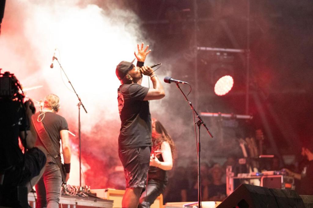 On part retrouver Me and that man, le side project du chanteur de Behemoth qui change radicalement de style. Un dark folk, à mi-chemin entre Jack White, Johnny Cash et Nick Cave qui se prête très bien à la Valley, que l’on renommerait volontiers le Volcan, tant la chaleur est suffocante. Malgré des instruments d’appoints car perdus à l’aéroport, et des guests forcément absents, le bassiste du groupe se charge des voix additionnelles laissant Nergal en pente douce, se laissant porter par son collègue, tout en profitant pour taper la pose pour les photographes. My Church is Black fait toujours son petit effet, profond et ensorceleur, tandis que l’entêtant Blues & Cocaïne est repris en chœur. Très bon concert !